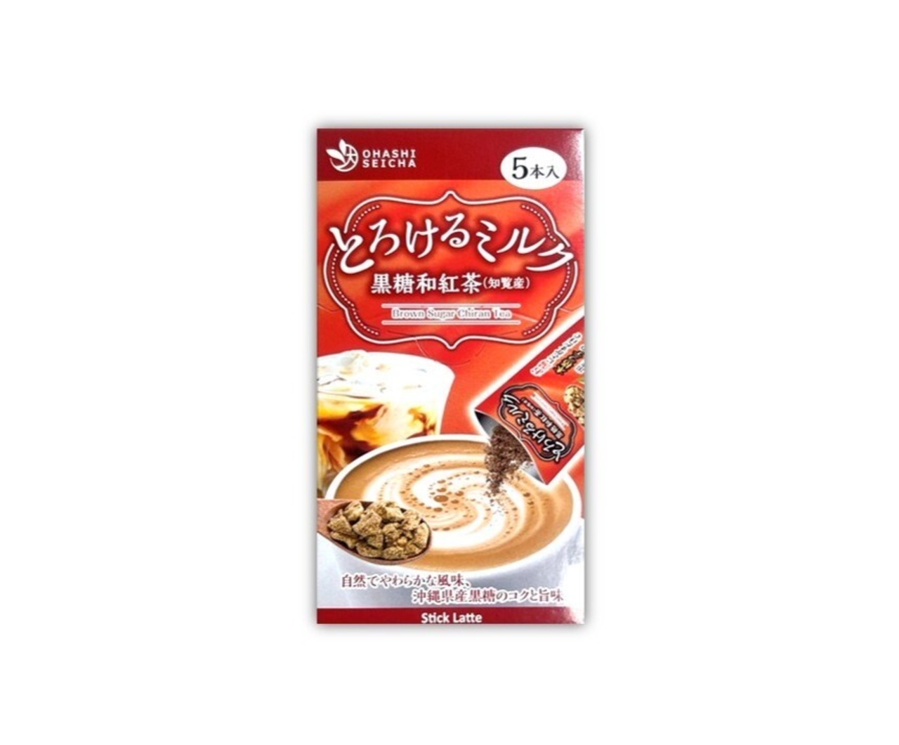 黒糖(沖縄県産)、乳等を主要原料とする食品(植物油脂、脱脂粉乳、全粉乳、デキストリン、乳糖、加糖練乳、クリーム、ぶどう糖)、和紅茶パウダー(知覧産)/ガゼインNa、pH調整剤、乳化剤、香料